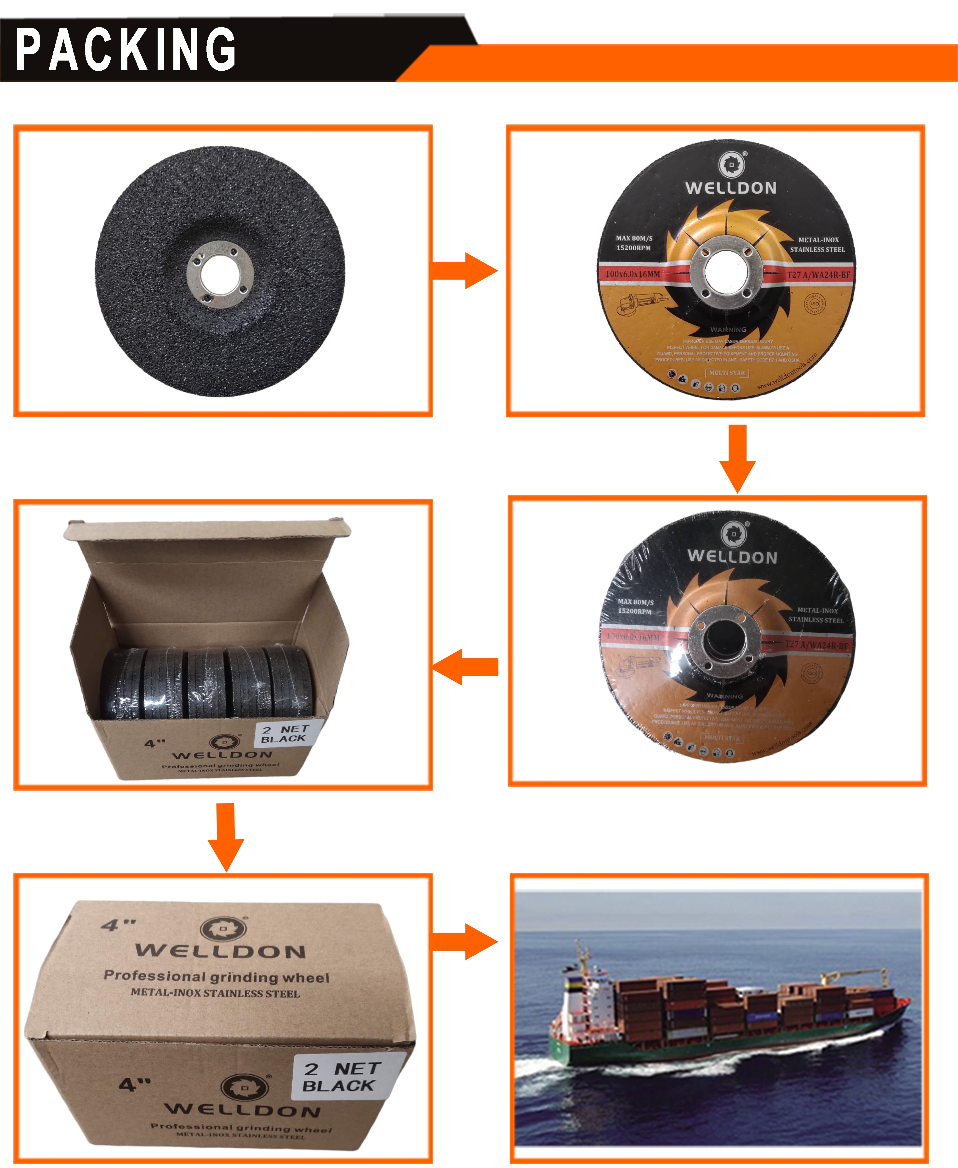 | 100 * 4.0 * 16mm | Larga vida y alta eficiencia. | Grinding áspero del metal, línea de soldadura, acero de aleación, acero de alta velocidad, acero de la construcción. | 15200rpm | Cortador de mano | 044002 | 1.5net marrón |